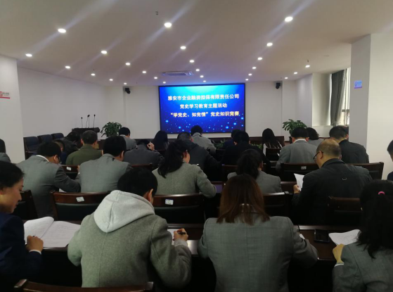 為推動(dòng)黨史學(xué)習(xí)教育深入開(kāi)展,檢驗(yàn)學(xué)習(xí)成效,豐富教育形式,4月22日,市擔(dān)保公司開(kāi)展“學(xué)黨史、知黨情”黨史知識(shí)競(jìng)賽,公司全體黨員干部職工參加競(jìng)賽。