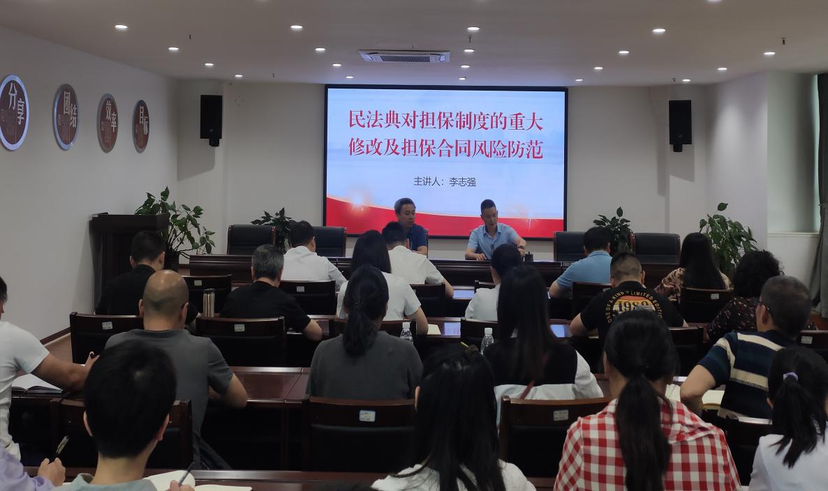 為進一步提高風險防范能力,幫助干部職工在實際工作中理解并正確適用擔保制度的有關(guān)法律條文,強化干部職工法治意識,按照“轉(zhuǎn)樹作抓”專項行動方案和年度學法計劃,5月11日,市擔保公司開展《民法典對擔保制度的重大修改及擔保合同風險防范》專題知識講座。