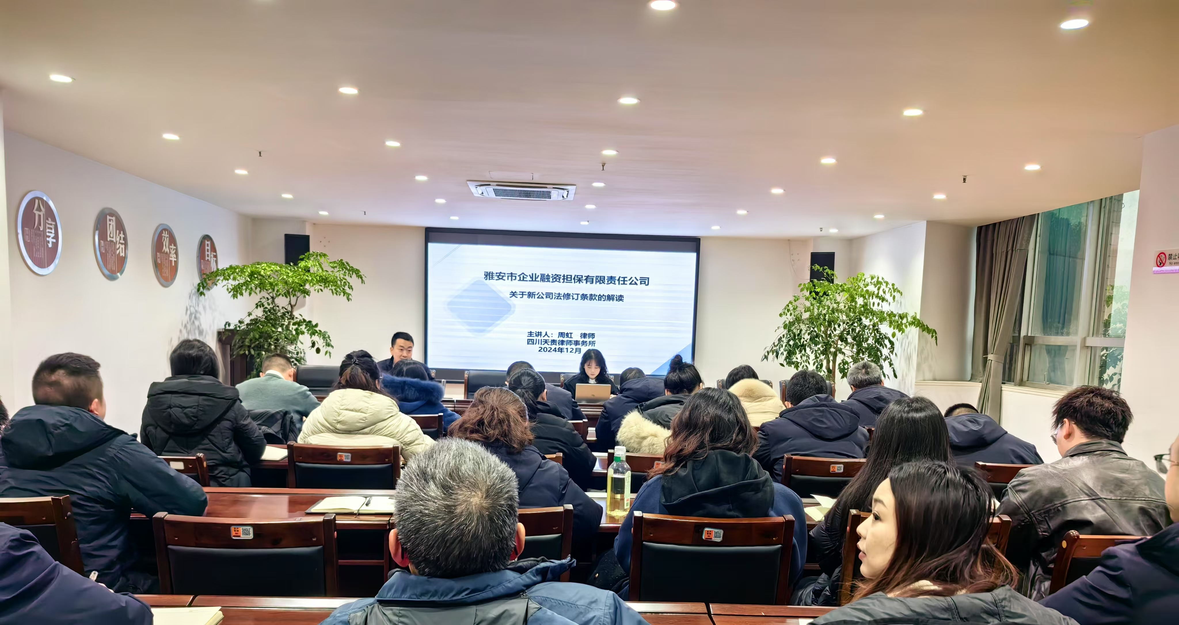 新修訂的《中華人民共和國公司法》已于2024年7月1日正式施行。為做好新舊法條的銜接工作,幫助公司精準把握新公司法的核心要義,提高公司在復(fù)雜市場環(huán)境中防范和化解法律風險能力,2024年12月13日上午,市擔保公司特邀請具備豐富法律實踐經(jīng)驗的周虹律師,組織開展了新《公司法》專題學習培訓講座。